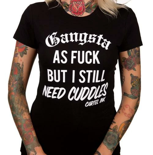 True to size Gangsta as Fuck, but Still Need Cuddles Women’s T Shirt, Tattoo Fashion T-Shirt for Women