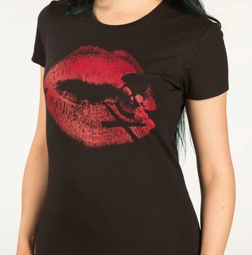 True to size Kiss of Death Black Women’s T Shirt, Punk Rock T-Shirt for Women