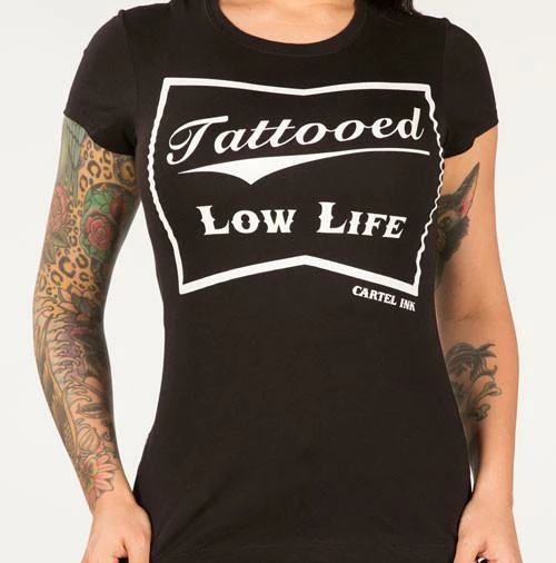 True to size Tattooed Low Life Women’s T Shirt, Tattoo Fashion T-Shirt for Women