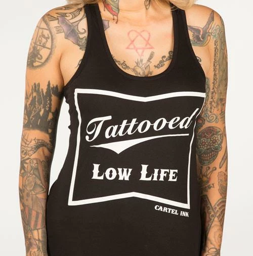 True to size Tattooed Low Life Women’s Racer Back Tank Top, Tattoo Fashion Tank top for Women